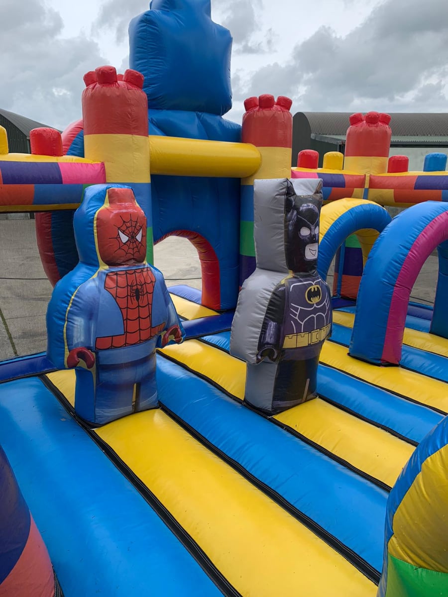 Our Legoland-themed bouncy castle features vibrant, Lego-inspired designs with life-sized inflatable 3D figures of popular Lego characters. It includes a large, exciting slide which leads to a soft, bouncy landing area. Inside, children can navigate through interactive inflatable pillars, arches and 3D characters. This durable and safety-certified attraction offers endless fun and imaginative play, perfect for events and parties.