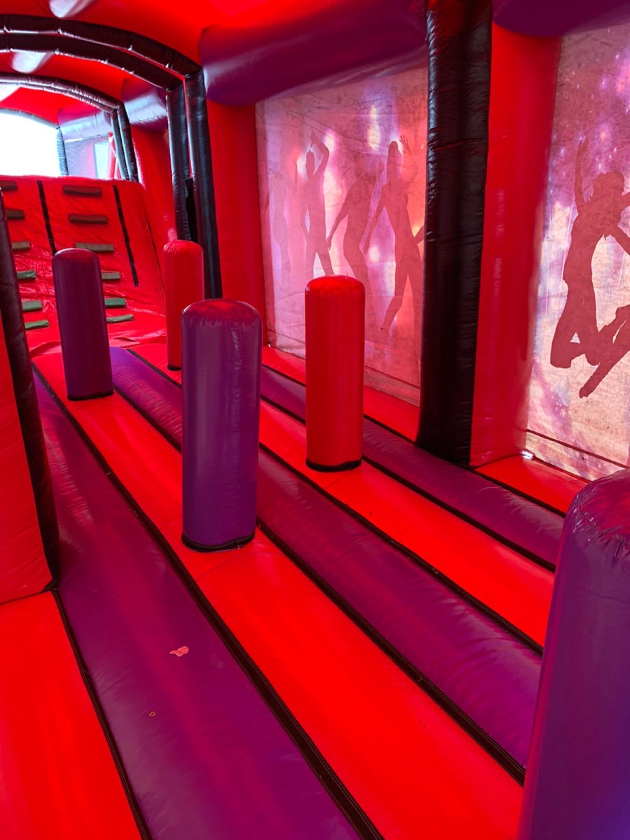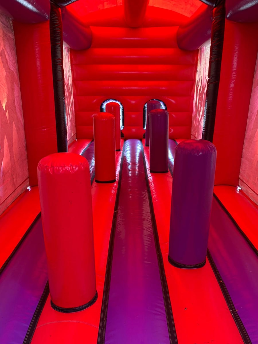 Picture a thrilling 40-foot covered obstacle in Derry City featuring blow-up pillars, a challenging climbing wall, and an exhilarating big slide. The course is designed for adventure seekers of all ages, offering a series of exciting obstacles to conquer. Participants navigate through inflatable pillars, test their climbing skills on a sturdy wall, and cap off the adventure with a thrilling descent down a spacious slide. It's an action-packed experience that promises fun, excitement, and a memorable challenge for everyone involved.