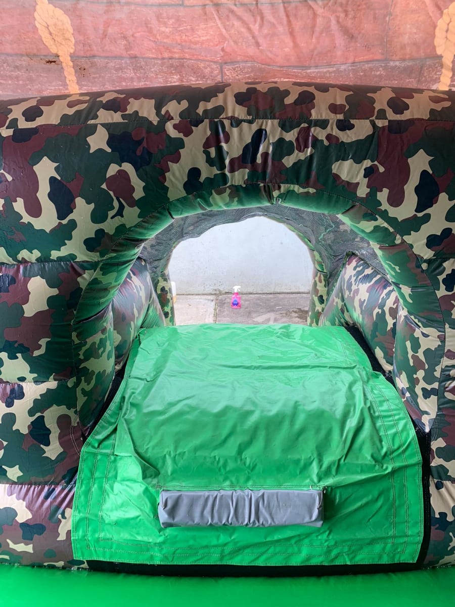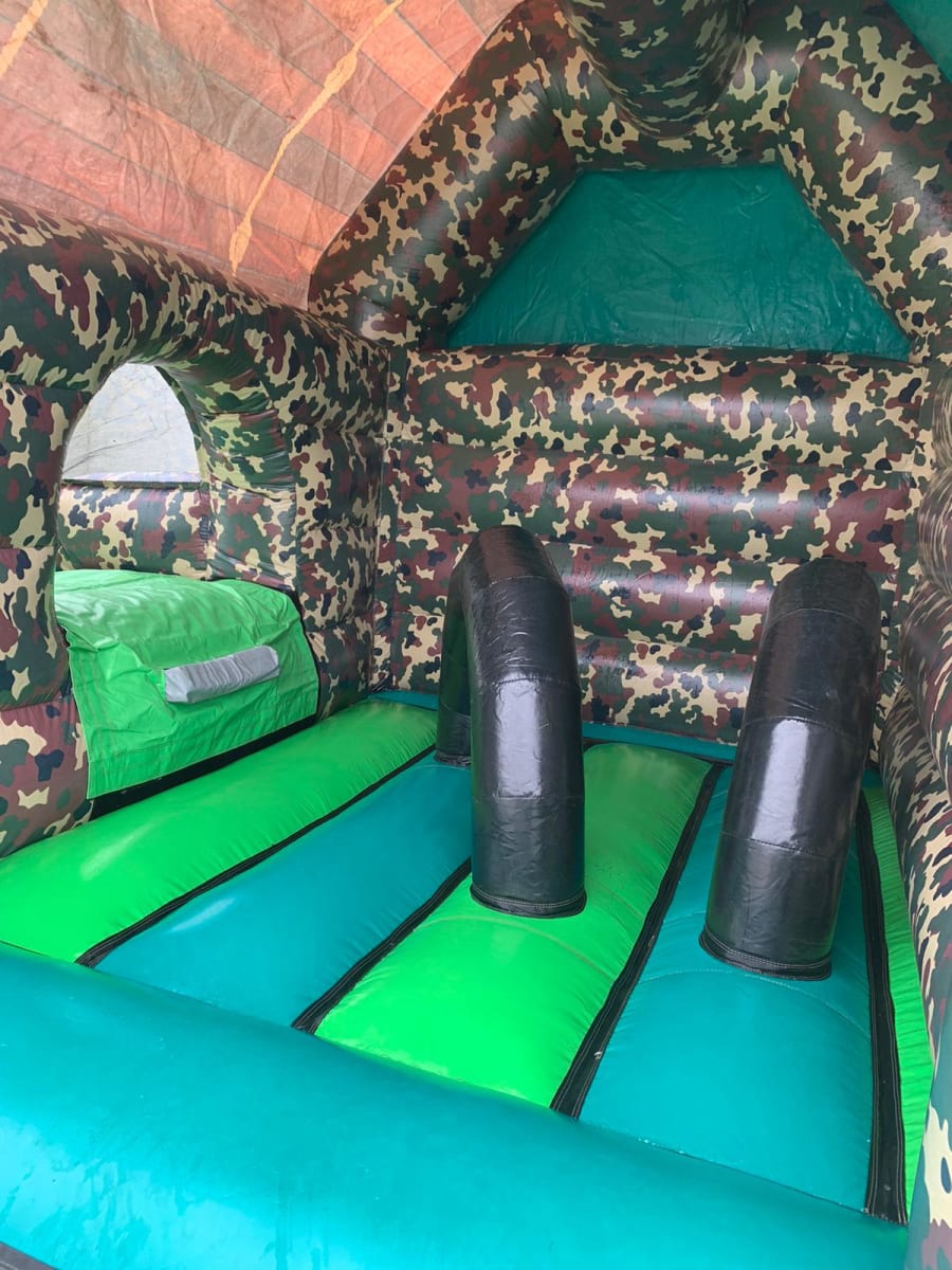 Our army bouncy castle with a slide is an action-packed inflatable play area designed with a military theme. It features bold, camouflaged patterns and soldiers. The bouncy castle includes a large, cushioned jumping area, blow up arches and an integrated slide, providing multiple ways for kids to play and have fun. Ideal for parties, community events, and military-themed celebrations, this army bouncy castle with slide offers an adventurous and engaging experience for young recruits.