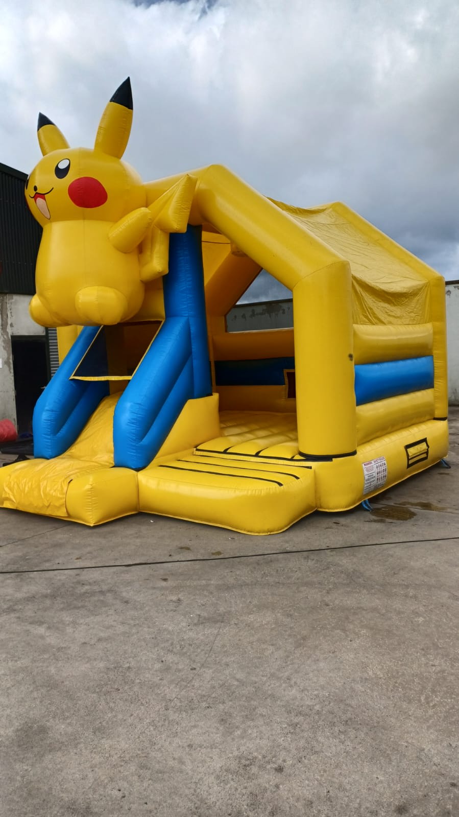 Our Pokémon castle with a 3D Pikachu and slide is an enchanting inflatable play structure designed for young Pokémon enthusiasts. The highlight is a large, three-dimensional Pikachu figure that stands prominently on the structure, adding an extra layer of excitement and visual appeal. Inside, kids can enjoy a spacious bouncing area, and the castle also includes a fun slide for additional adventure. Perfect for themed parties, community events, and festivals, this Pokémon castle with a 3D Pikachu and slide provides a magical and interactive experience for children who love Pokémon.