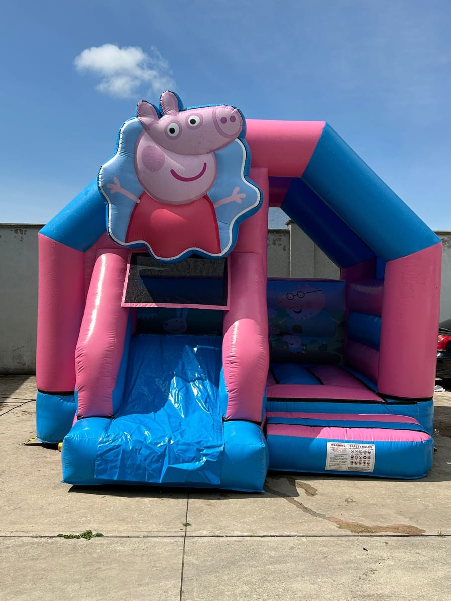 The Peppa Pig Bouncy Castle with Slide is a delightful inflatable play structure themed around the popular children's character Peppa Pig. It features a spacious bouncing area and an integrated slide, designed to provide endless fun for young fans. This bouncy castle is adorned with a 3D image of Peppa Pig, vibrant images of Peppa Pig and her friends, creating an immersive environment that captures the essence of the beloved TV show. The bright colours and familiar characters make it an attractive and engaging play option for children. The Peppa Pig Bouncy Castle with Slide is perfect for birthday parties, community events, and indoor play centres, offering a safe and entertaining activity that young children will love.