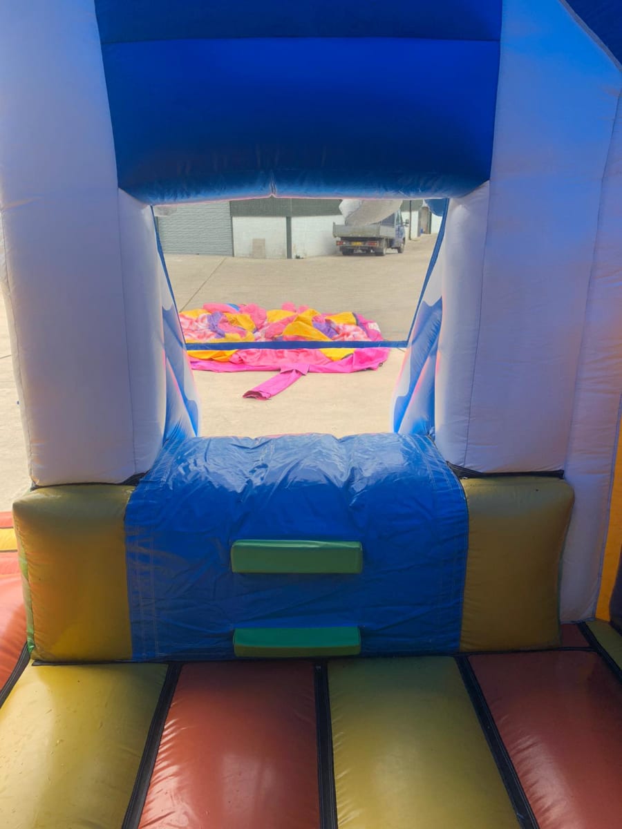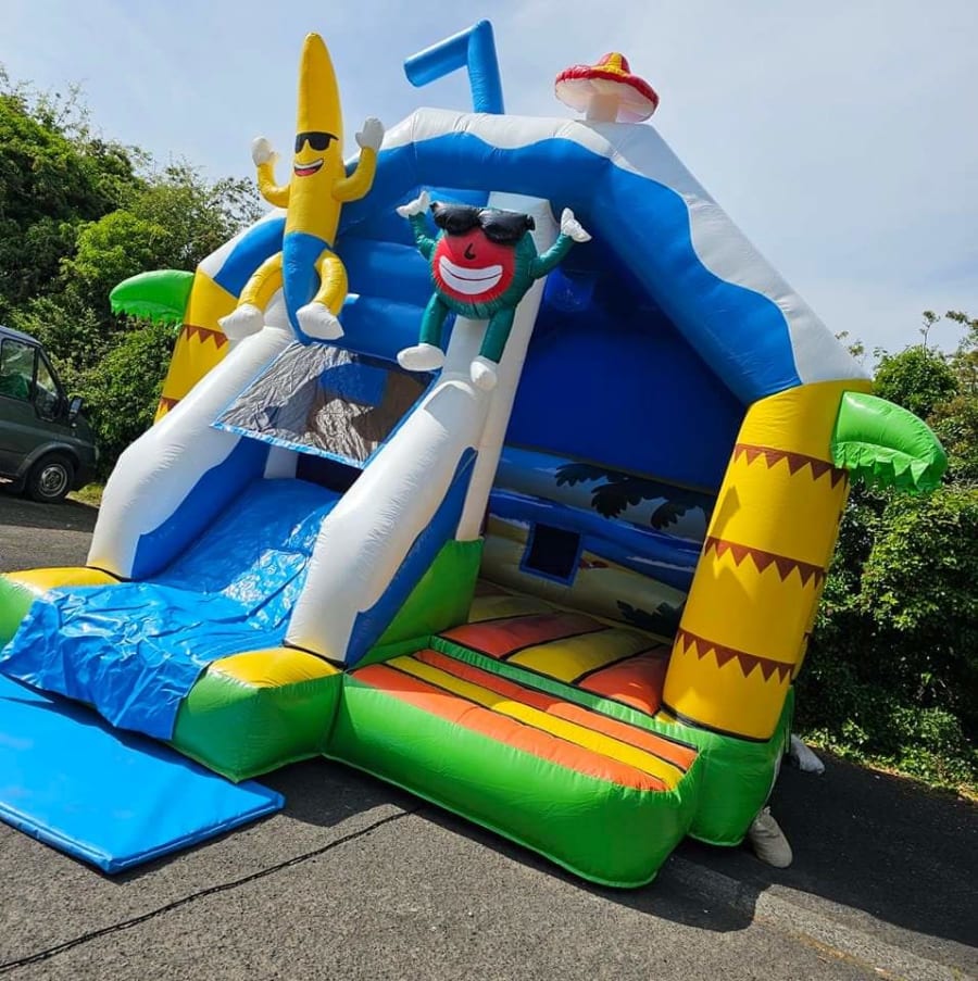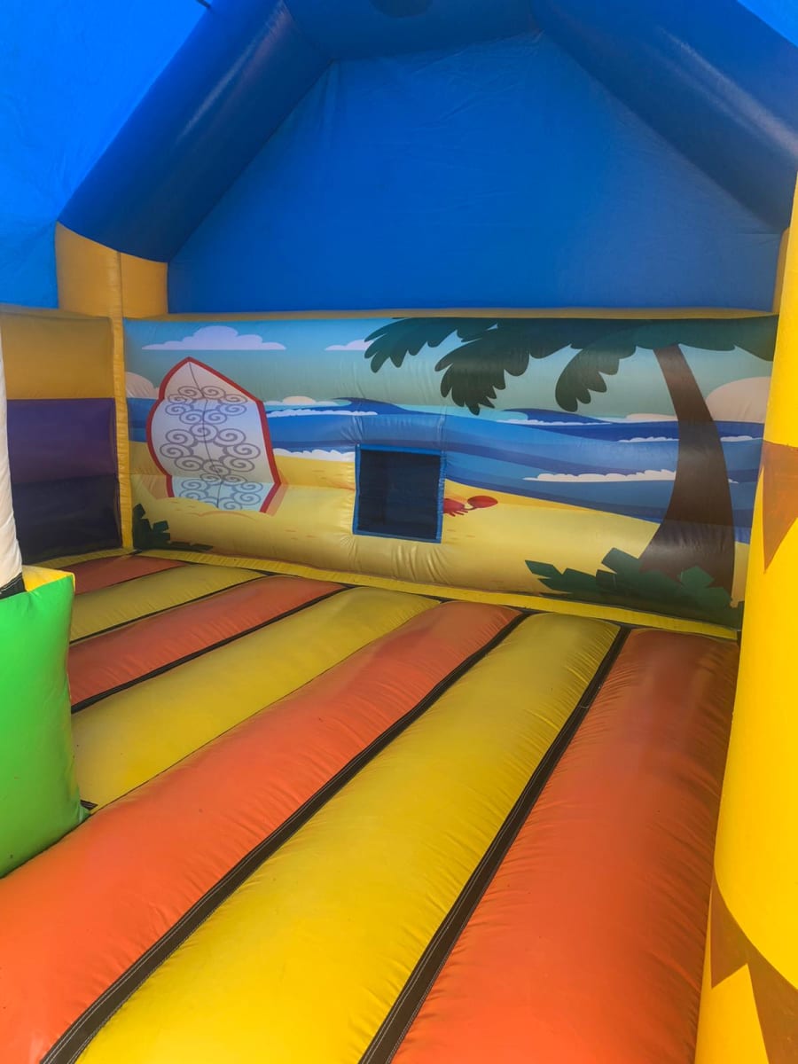 Our combo beach-themed bouncy castle with a slide is a charming and fun inflatable play area perfect for younger children and smaller gatherings. This bouncy castle features bright, beach-inspired colors and decorations such as palm trees. It offers a cozy bouncing area where kids can jump and play safely, along with a compact slide that adds a touch of excitement. Ideal for birthday parties, family events, and backyard gatherings, this beach-themed bouncy castle provides a delightful and engaging seaside adventure for young beachgoers.