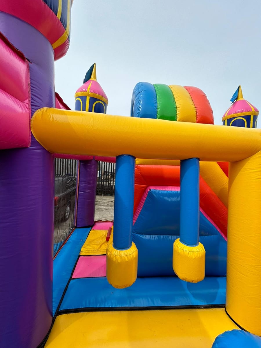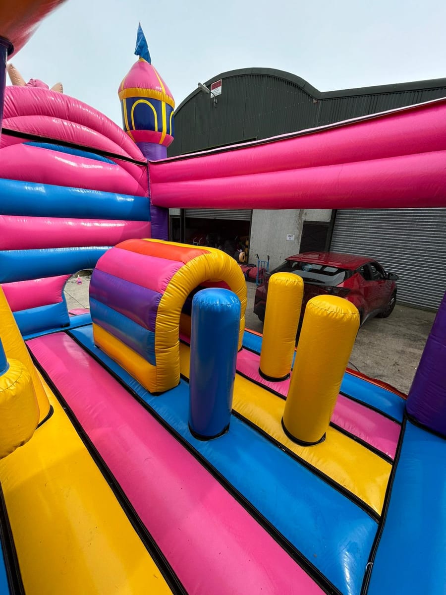 The Unicorn World Bouncy Castle with Slide is a delightful inflatable play structure featuring a unicorn theme. It includes a spacious bouncing area, an integrated slide, and enchanting decorations. The design incorporates 3D unicorn figures, along with blow-up pillars and arches, adding a magical touch to the play experience. The bright colours and whimsical elements make it a captivating attraction for birthday parties, community events, and indoor play centres, providing endless fun and imaginative play for children.