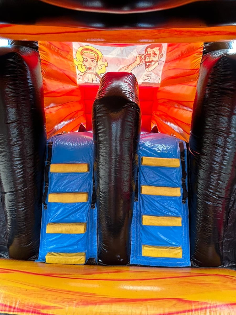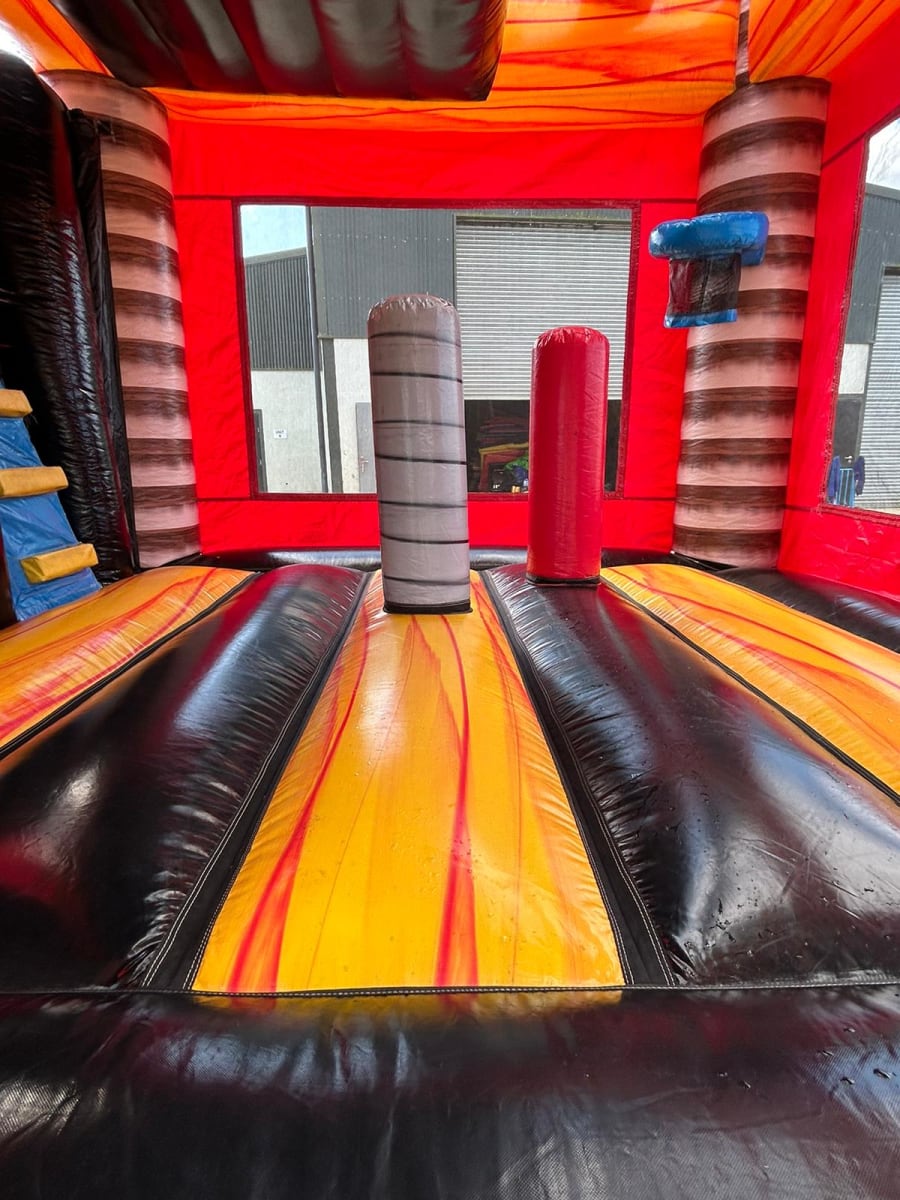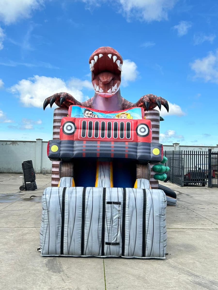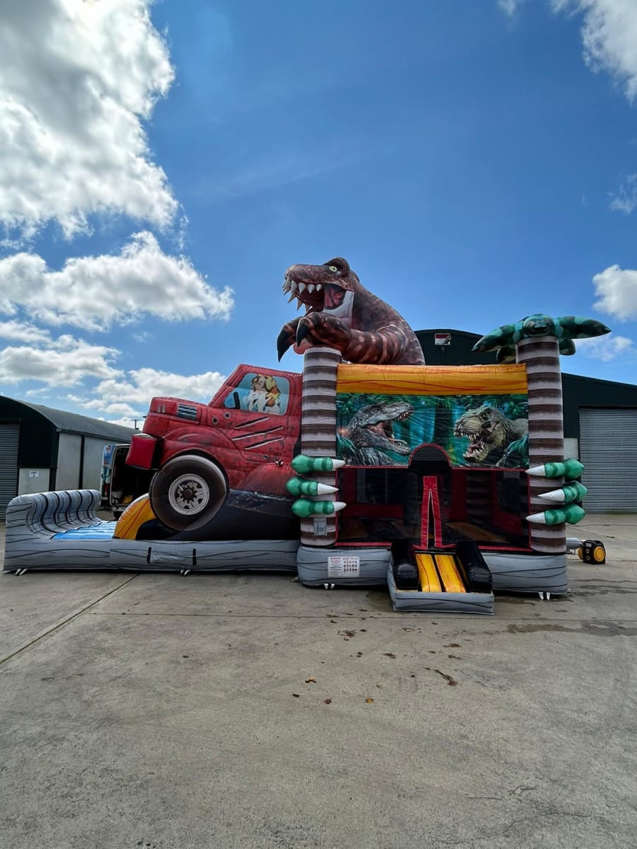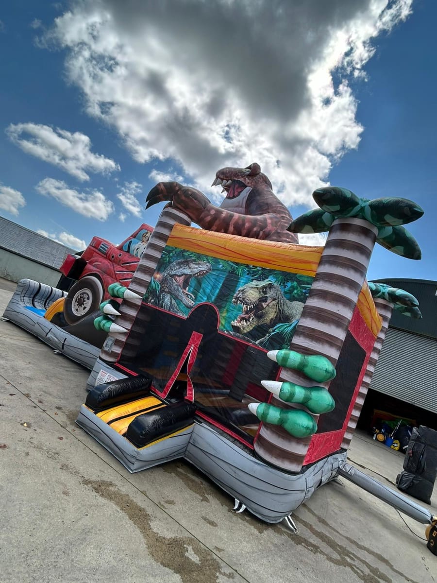 The Crazy Rex Bouncy Castle is a dynamic inflatable play structure featuring a double slide, blow-up pillars, a 3D dinosaur figure, and a basketball hoop. This bouncy castle combines vibrant dinosaur-themed decorations, creating an exciting play environment. The double slide provides extra fun and thrill, while the blow-up pillars add to the visual appeal. The 3D dinosaur figure enhances the theme, and the basketball hoop offers an additional activity for kids. Ideal for parties and events, the Crazy Rex Bouncy Castle ensures hours of energetic play and entertainment.