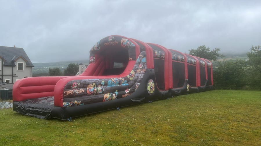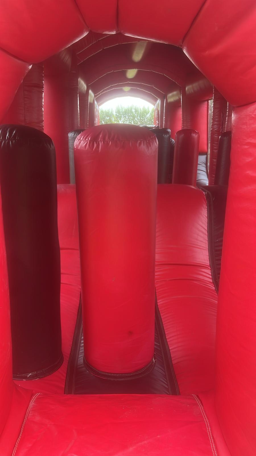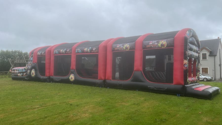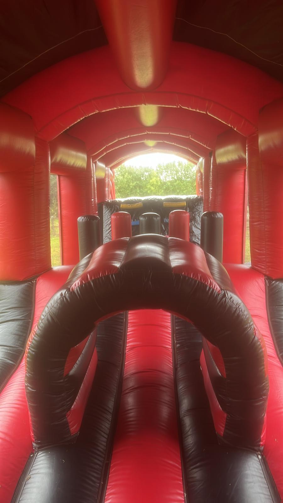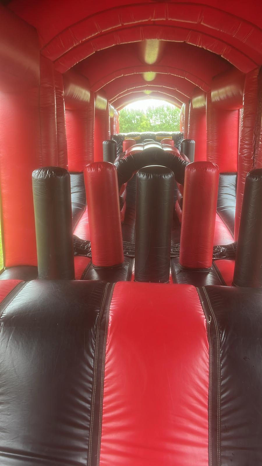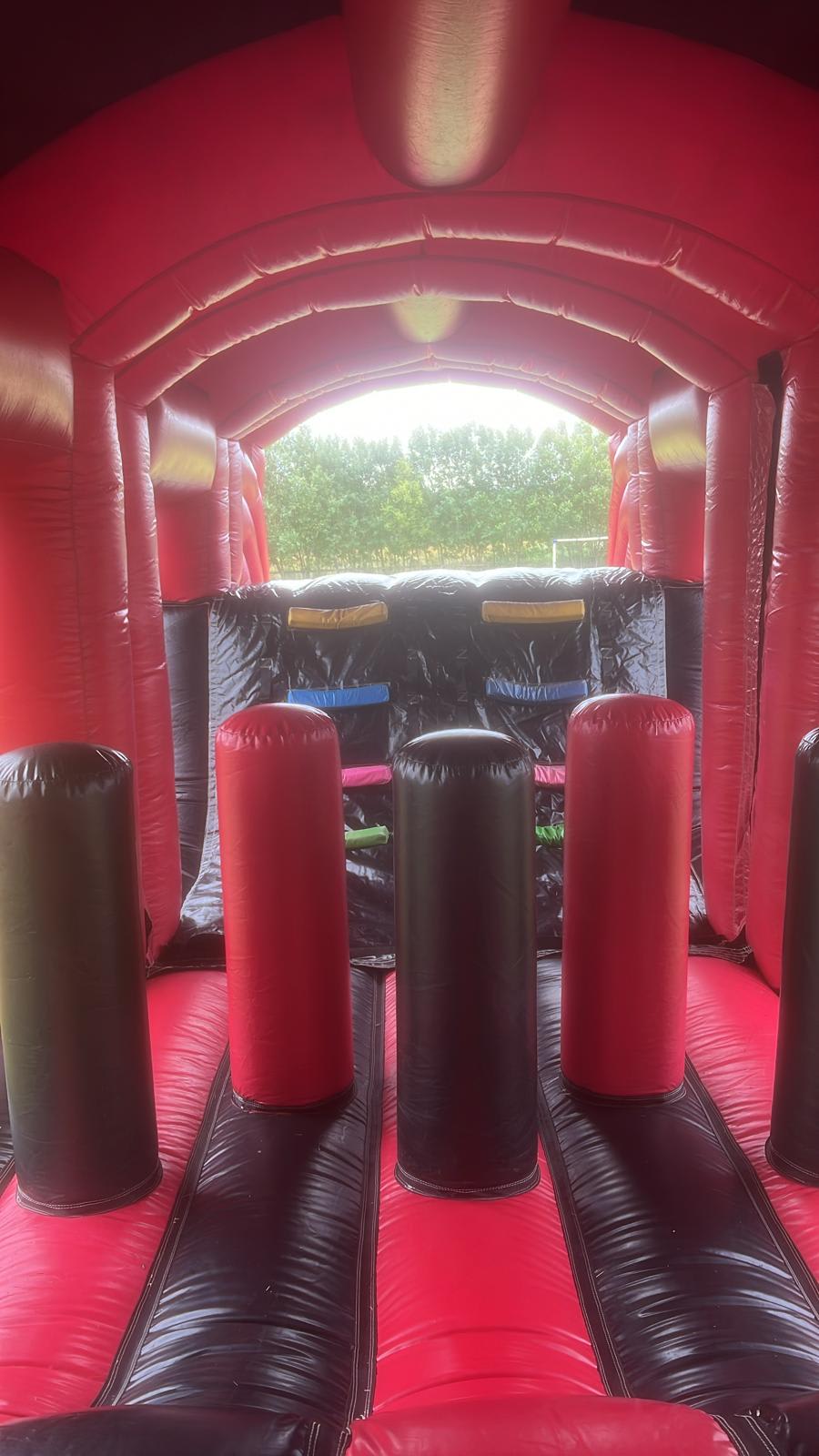 This obstacle course is the perfect feature for parties and events. With the clear netting around your able to sit back and relaxing watching the kids/adults enjoy the experience.