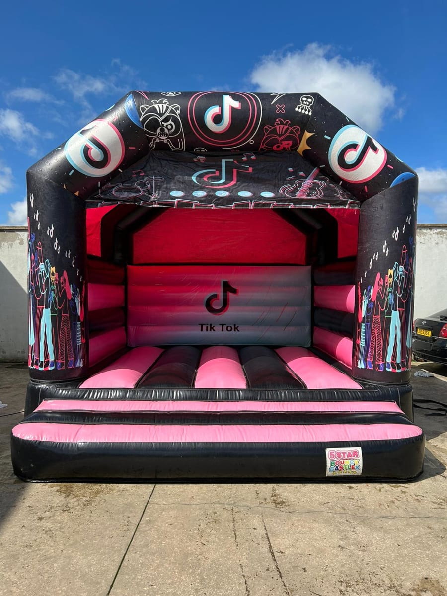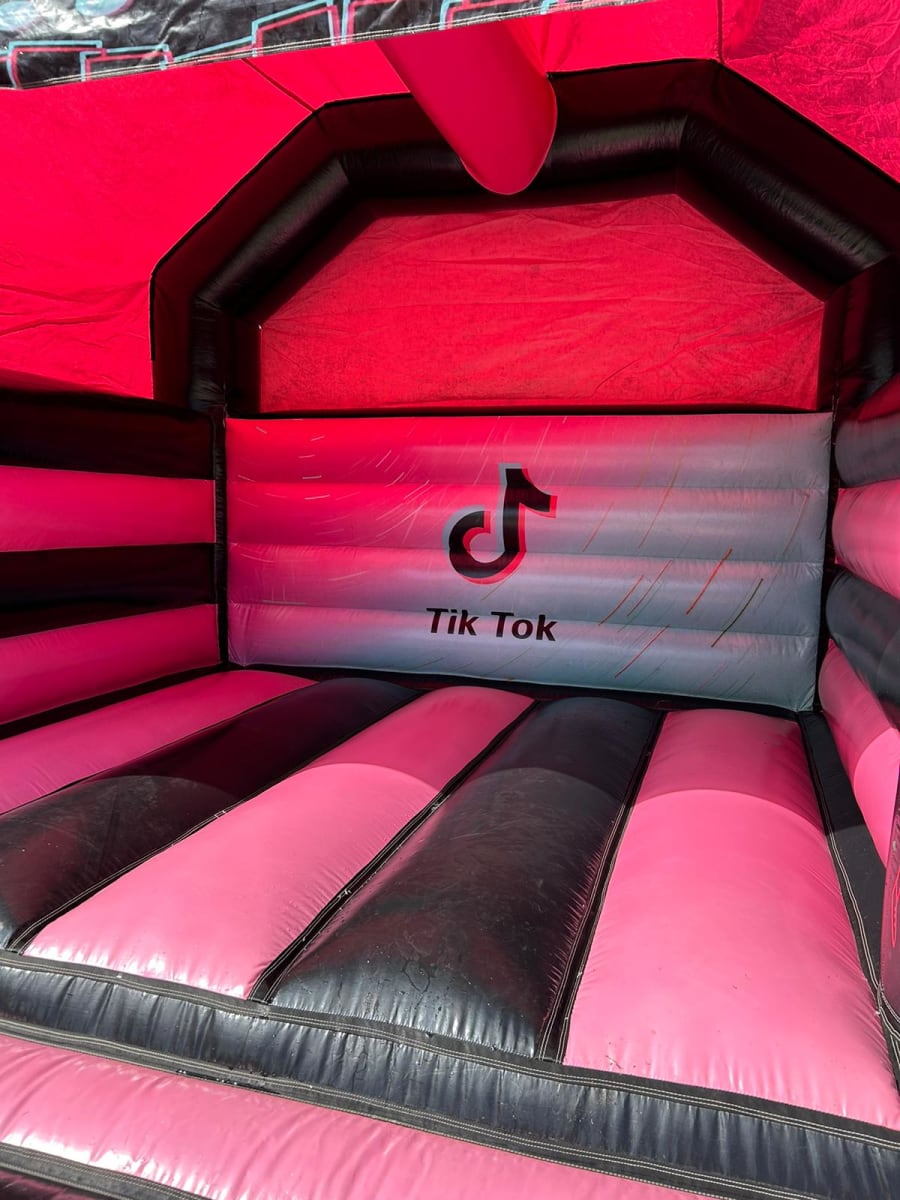 The TikTok Castle is an inflatable play structure designed with a TikTok theme, appealing to fans of the popular social media platform. This TikTok Castle focuses on providing a spacious and engaging area purely for bouncing and imaginative play. The castle features vibrant colours and prominent TikTok branding, including the iconic logo. The design aims to capture the dynamic and fun spirit of TikTok, making it an attractive centrepiece for events. Overall, the TikTok Castle is a delightful and trendy attraction, perfect for parties, festivals, and gatherings where young TikTok enthusiasts can enjoy energetic play in a themed setting. You can also have a look at our Tik Tok Combo or Disco Dome for more options.